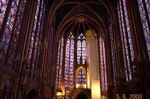After the Louvre, we jumped back on the Metro and headed through a light rain to Saint Chapelle. Saint Chapelle is a very old cathedral that has exquisite stained glass windows that tell the story of each book of the bible.