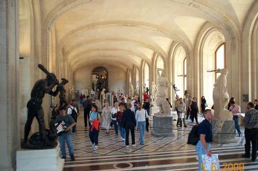 This morning we got up at a reasonable time and headed out to visit the Louvre. The Louvre is the biggest museum that I've ever seen. The building itself is about 4 Denver city blocks long and is separated into 3 major wings. The building itself is a work of art, and the grounds are fantastically decorated in beautiful flower gardens. Inside the best word to describe the Louvre is overwhelming. We heard that if you spent 3 seconds on every display in the Louvre it would take you 3 months to see everything. Consequently we took a very deliberate approach to our visit. We started by getting a visitors guide, printed in English, and planned our route of attack to see all of the items that we felt were important. Following this game plan, we actually managed to see everything we wanted to see, and visit every wing of every floor except a couple of areas that were closed for the day.